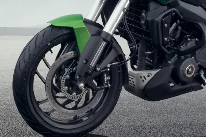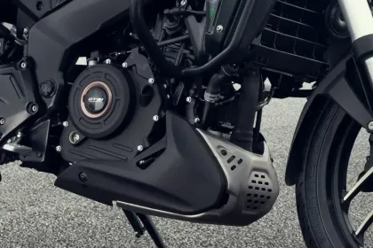 The Bajaj Dominar 400 is a sporty motorcycle built for agile handling and spirited riding. It features a 373.3 cc displacement, 39.43 bhp, 35 Nm torque engine. Key features include manual transmission, ABS, petrol fuel, 2 seater.