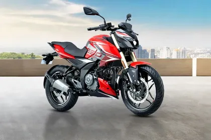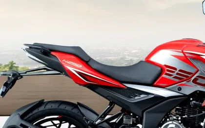 The Bajaj Pulsar N250 is a sporty motorcycle built for agile handling and spirited riding. It features a 249.07 cc displacement, oil-cooled, 24.14 bhp engine. Key features include manual transmission, dual-channel ABS, petrol fuel, 14 L fuel tank.