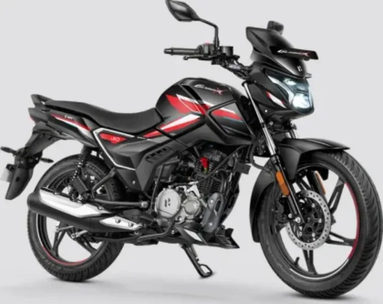 The Hero Glamour X is a practical commuter bike designed for daily urban riding with excellent fuel efficiency. It features a 124.7 cc displacement, air-cooled, 11.4 bhp engine. Key features include manual transmission, 2 seater, 10 L fuel tank, disc brakes.