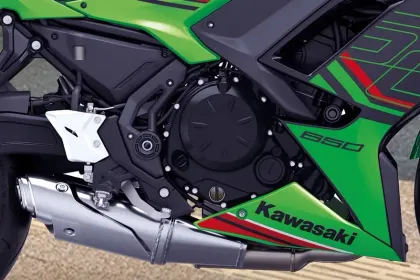 The Kawasaki Ninja 650 is a track-focused super bike designed for extreme performance. It features a 649 cc displacement, liquid-cooled, 67.32 bhp engine. Key features include manual transmission, dual-channel ABS, petrol fuel, 2 seater.