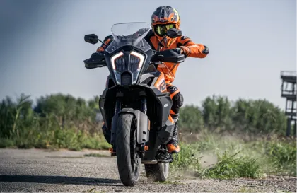 The KTM 1290 Super Adventure S is an adventure touring motorcycle built for both on-road and off-road exploration. It features a 1301 cc displacement, 157.81 bhp, 138 Nm torque engine. Key features include manual transmission, ABS, petrol fuel, 2 seater.