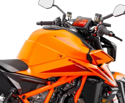 The KTM 1390 Super Duke R is a track-focused super bike designed for extreme performance. It features a 1350 cc displacement, 147.51 bhp, 145 Nm torque engine. Key features include manual transmission, ABS, petrol fuel, 2 seater.
