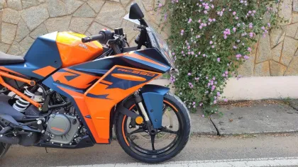 The KTM RC 390 is a sporty motorcycle built for agile handling and spirited riding. It features a 373.27 cc displacement, liquid-cooled, 42.9 bhp engine. Key features include manual transmission, ABS, petrol fuel, 2 seater.