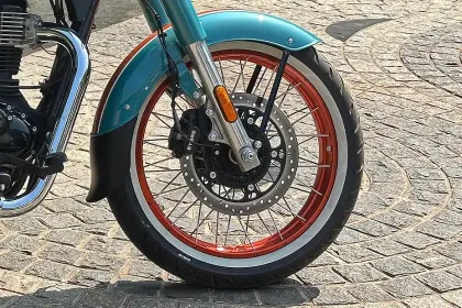 The Royal Enfield Goan Classic 350 is a classic cruiser motorcycle offering relaxed riding posture and timeless style. It features a 349 cc displacement, 20.2 bhp, 27 Nm torque engine. Key features include manual transmission, dual-channel ABS, petrol fuel, 1 seater.