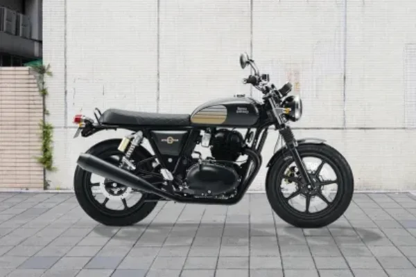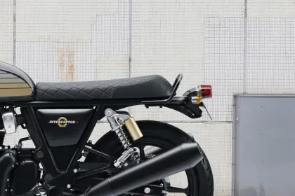 The Royal Enfield Interceptor 650 is a retro-styled cafe racer combining classic aesthetics with modern performance. It features a 648 cc displacement, 46.8 bhp, 52.3 Nm torque engine. Key features include manual transmission, dual-channel ABS, petrol fuel, 2 seater.