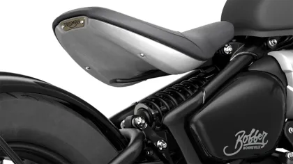 The Triumph Bonneville Bobber is a classic cruiser motorcycle offering relaxed riding posture and timeless style. It features a 1200 cc displacement, liquid-cooled, 76.9 bhp engine. Key features include manual transmission, dual-channel ABS, petrol fuel, 1 seater.