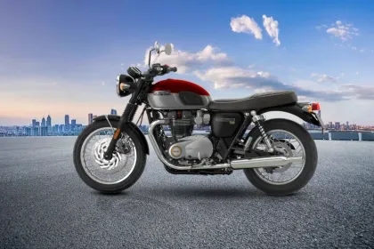 The Triumph Bonneville T120 is a classic cruiser motorcycle offering relaxed riding posture and timeless style. It features a 1200 cc displacement, liquid-cooled, 78.91 bhp engine. Key features include manual transmission, dual-channel ABS, petrol fuel, 2 seater.