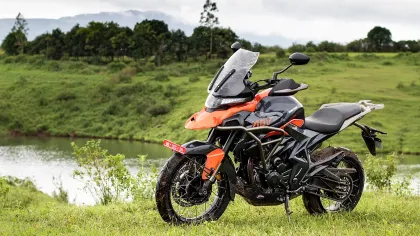 The Zontes 350T is an adventure touring motorcycle built for both on-road and off-road exploration. It features a 348 cc displacement, liquid-cooled, 38.27 bhp engine. Key features include manual transmission, dual-channel ABS, petrol fuel, 2 seater.