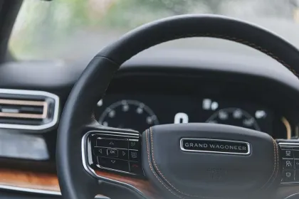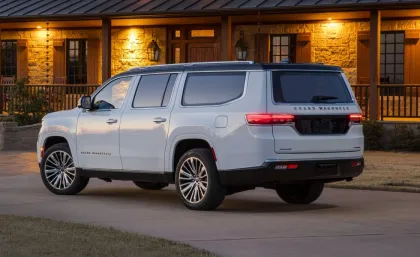 The Jeep Grand Wagoneer is a luxury suv designed for spacious family travel and versatile driving. It features 3000 cc displacement, 562.2 bhp @ 5700rpm power, 500 Nm @ 3500rpm torque engine. Key features include automatic transmission, petrol fuel 7 seater seating capacity