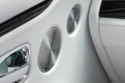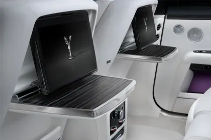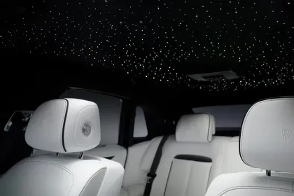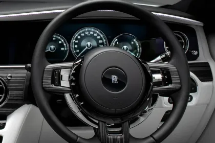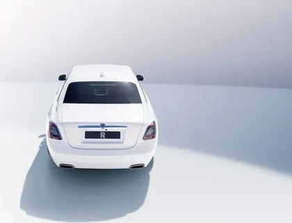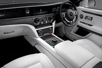 The Rolls Royce Ghost is a luxury sedan designed for comfortable commuting and long drives. It features 6749 cc displacement, 600 bhp @ 5000-6000rpm power, 900 Nm @ 1700-4000rpm torque engine. Key features include automatic transmission, petrol fuel 4 seater seating capacity