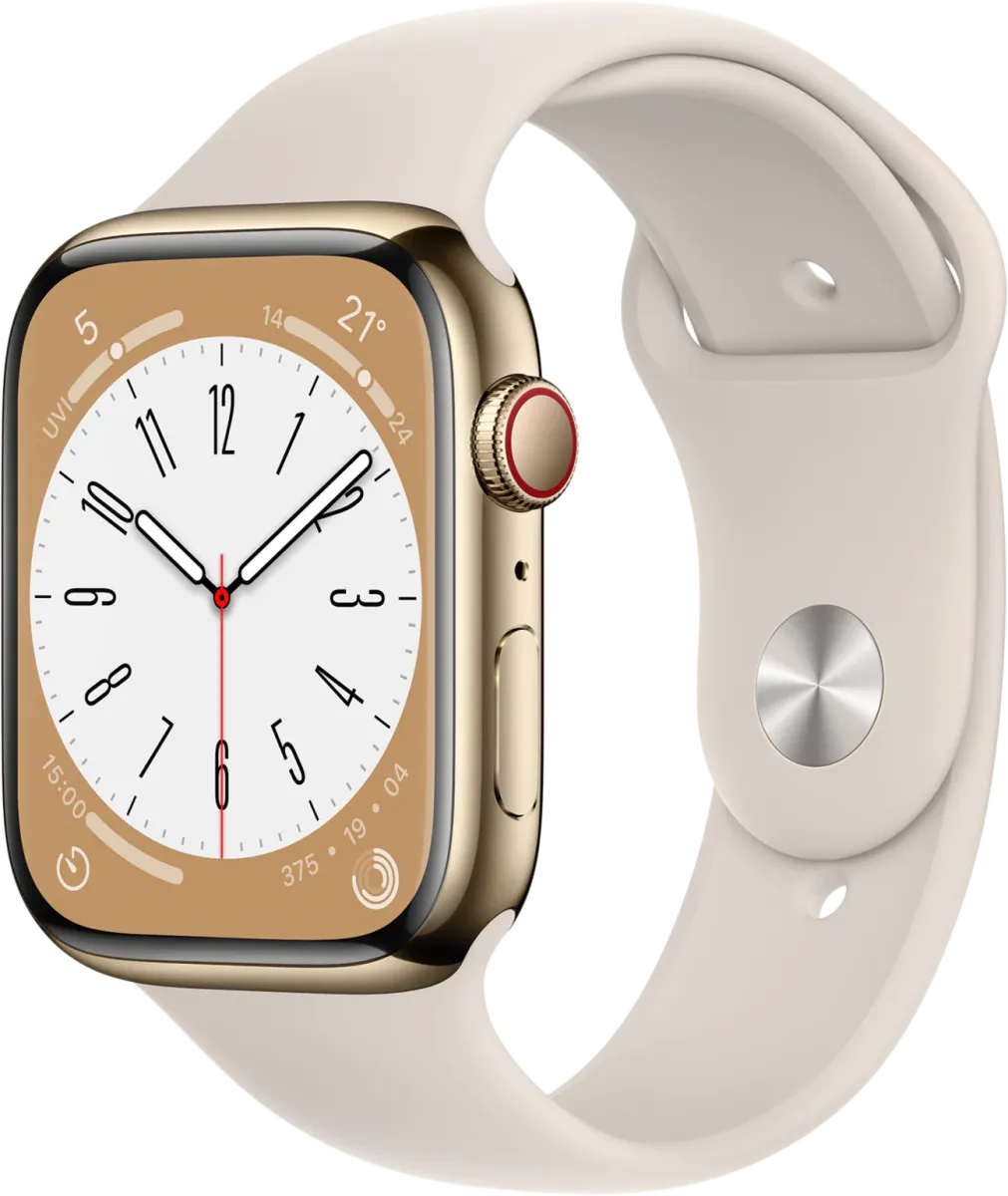 The Apple Watch Series 8 Stainless Steel 45 mm (GPS + Cellular) is a Smart Watch. Brand: Apple.