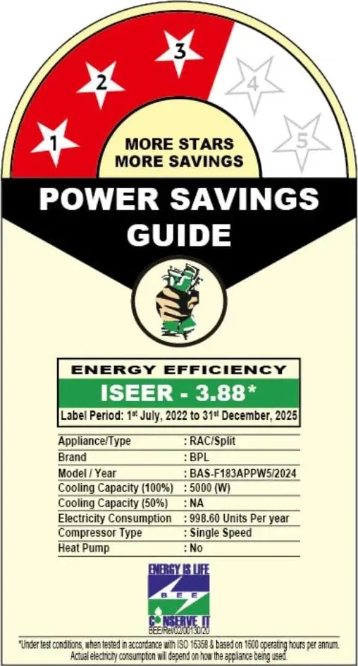 Specification: BPL BAS-F183APPW5 1.5 Ton 3 Star Split AC