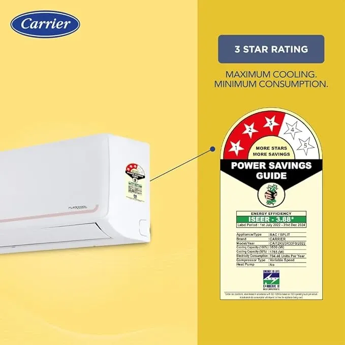 Specification: Carrier Flexicool 12K KURVE RXI 1 Ton 3 Star 2023 Inverter Split AC