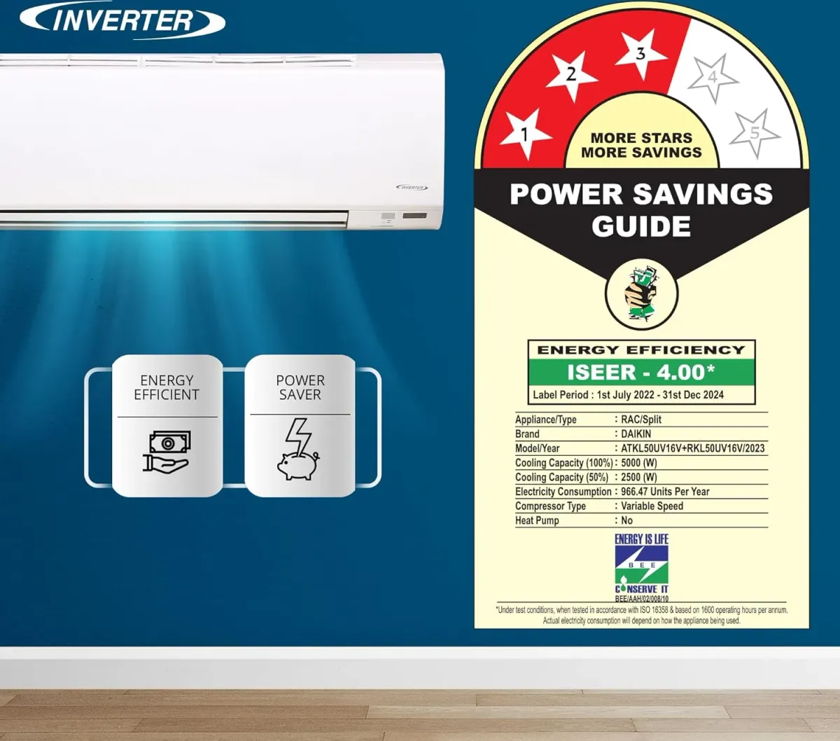 Specification: Daikin ATKL50UV16V 1.5 Ton 3 Star Inverter Split AC