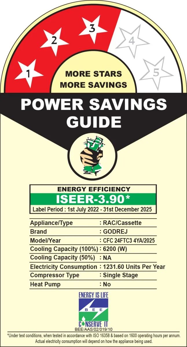Specification: Godrej CFC 24FTC3 4YA 2 Ton 3 Star Cassette AC