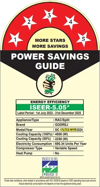 Specification: Godrej SIC 17LTC5 WYR 1.4 Ton 5 Star 2024 Inverter Split AC
