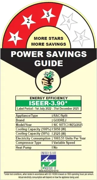 Specification: Godrej SIC 18TTC3 WZQ 1.5 Ton 3 Star 2025 Inverter Split AC