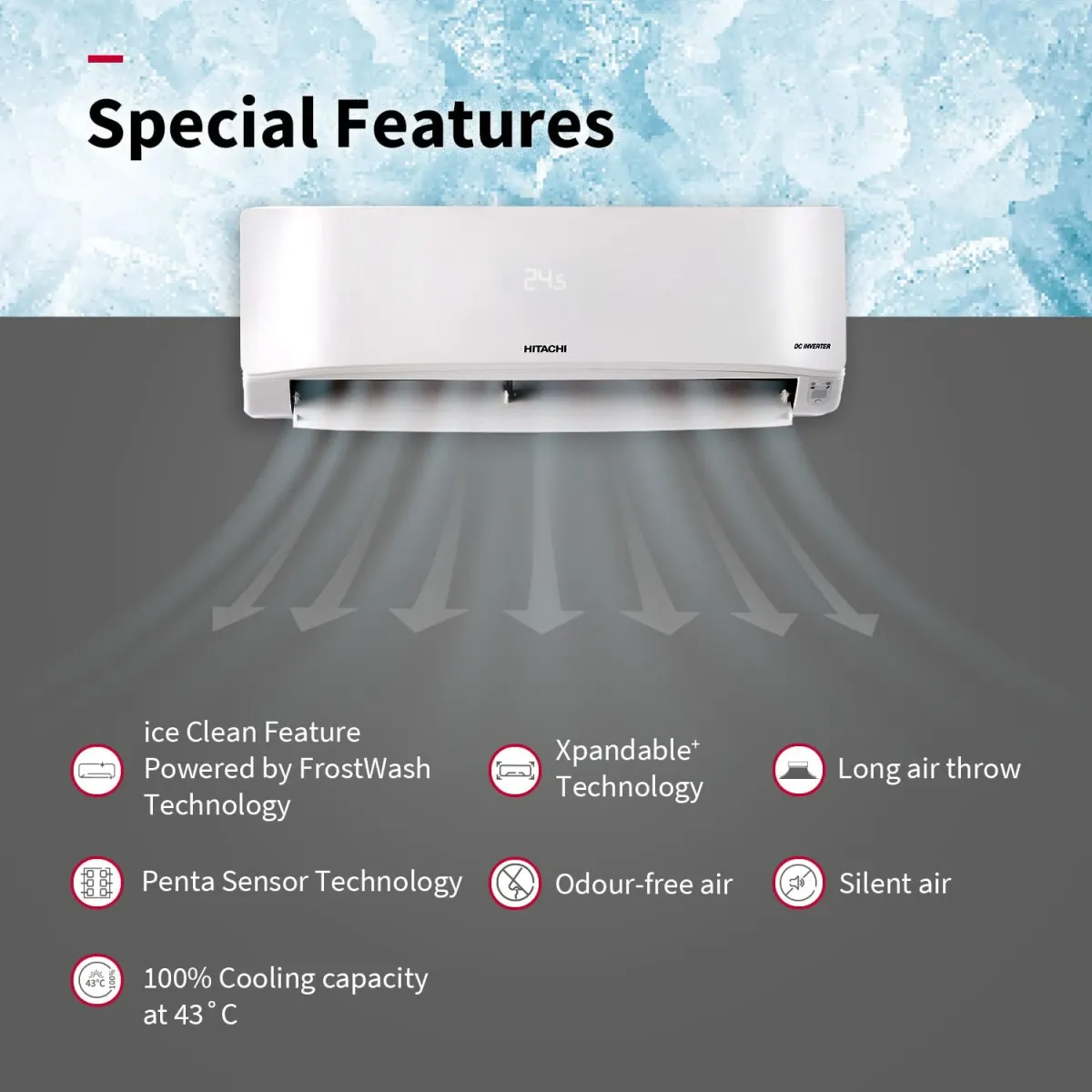 Specification: Hitachi 5400STXL RAS.G512PCBIBT 1 Ton 5 Star 2025 Inverter Split AC