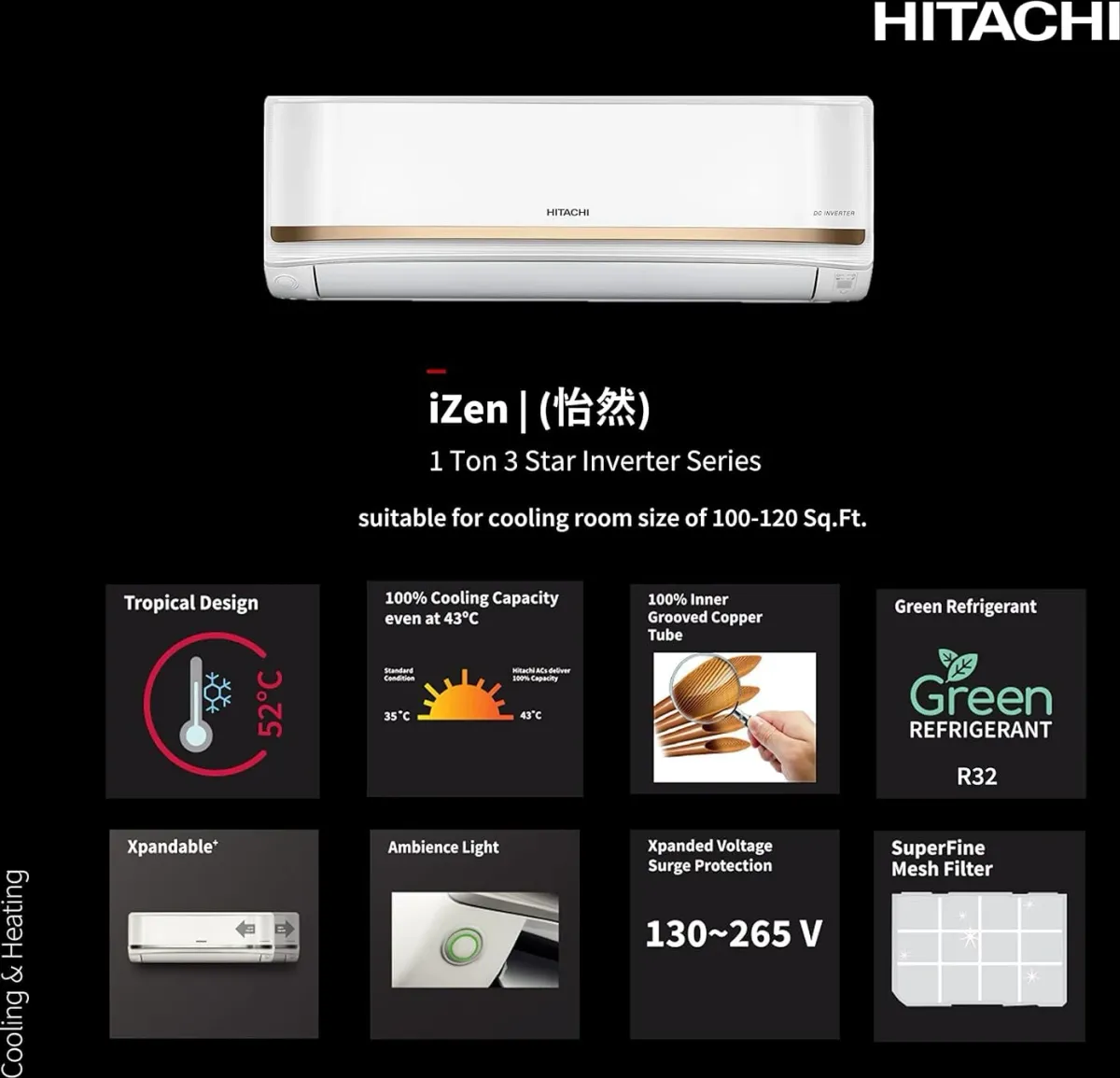 Specification: Hitachi RAS.G312PCBISS 1 Ton 3 Star 2025 Inverter Split AC