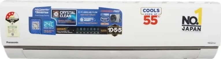 The Panasonic CS/CU-AU18BKYF 1.5 Ton 3 Star 2024 Inverter Split AC is a Split AC. Capacity: 1.5 Ton. Energy rating: 3 star. Brand: Panasonic.