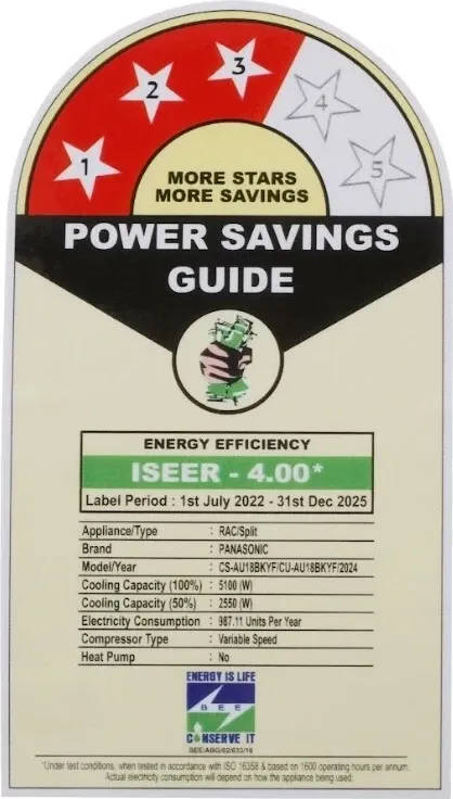 Specification: Panasonic CS/CU-AU18BKYF 1.5 Ton 3 Star 2024 Inverter Split AC