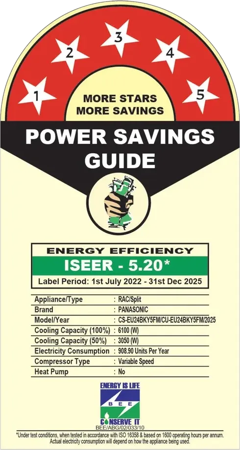 Specification: Panasonic CS/CU-EU24BKY5FM 2 Ton 5 Star 2025 Inverter Split AC