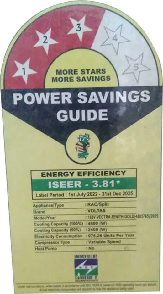Specification: Voltas 183V Vectra ZENITH Gold 1.5 Ton 3 Star 2025 Inverter Split AC
