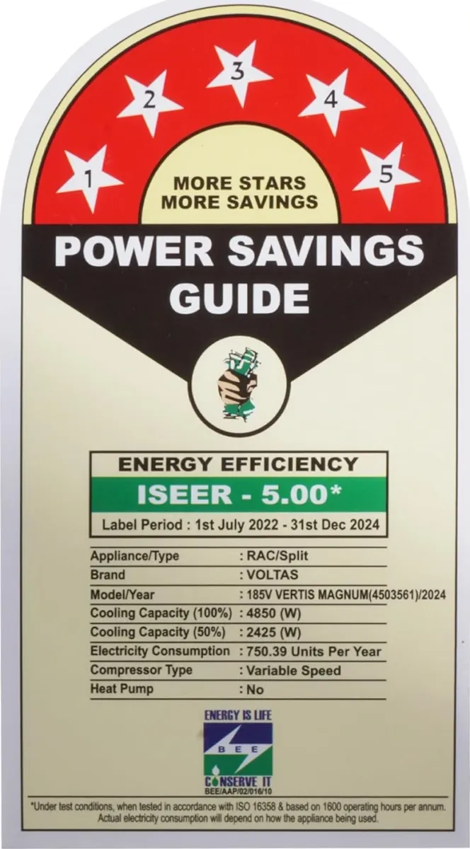 Specification: Voltas 185V Vertis Magnum 1.5 Ton 5 Star Inverter Split AC