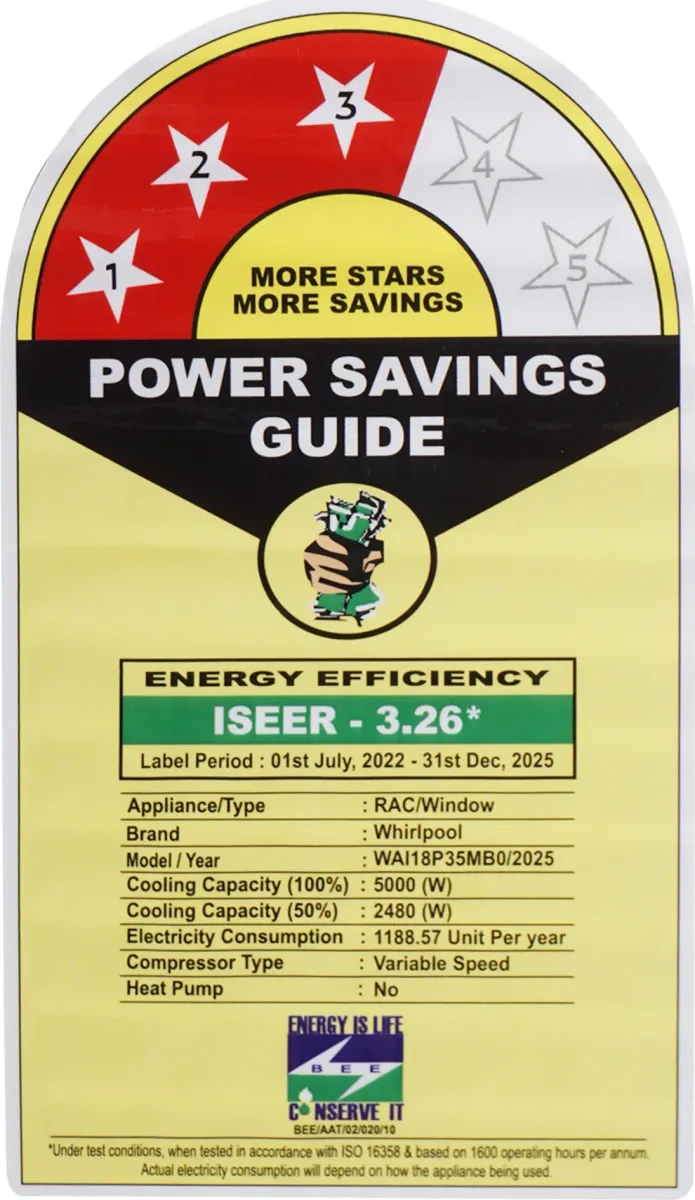 Specification: Whirlpool WAI18P35MB0 1.5 Ton 3 Star Inverter Window AC