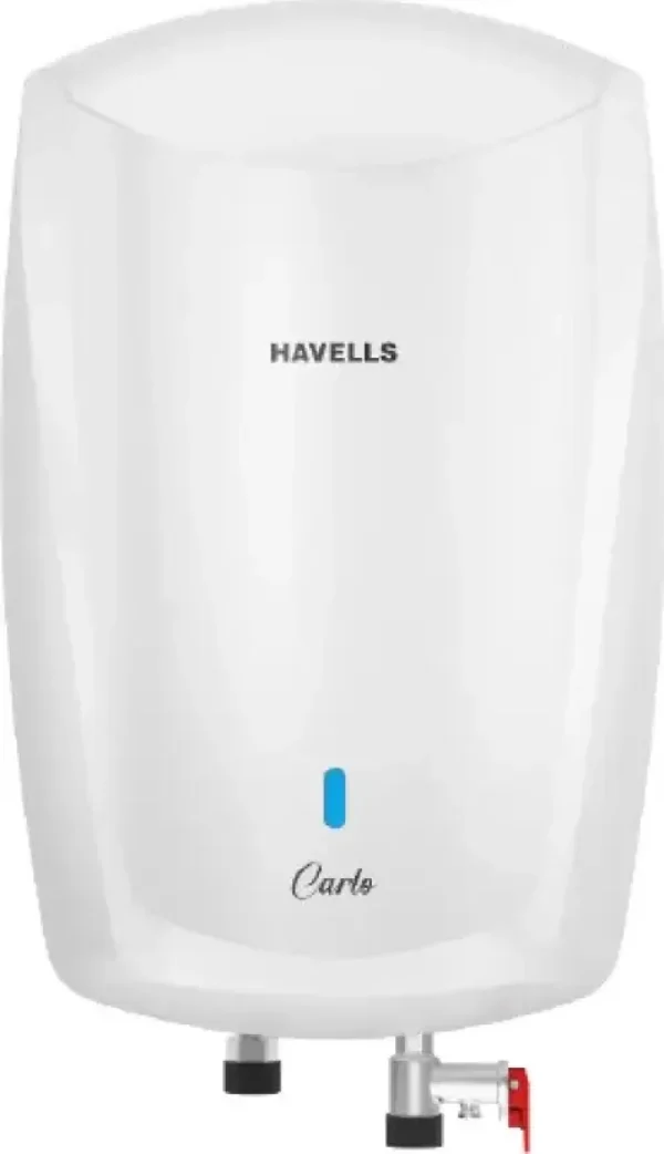 The Havells Carlo 5L Instant Water Geyser is a Instant water geyser. Capacity: 5 L. Energy rating: 5 star. Brand: Havells.