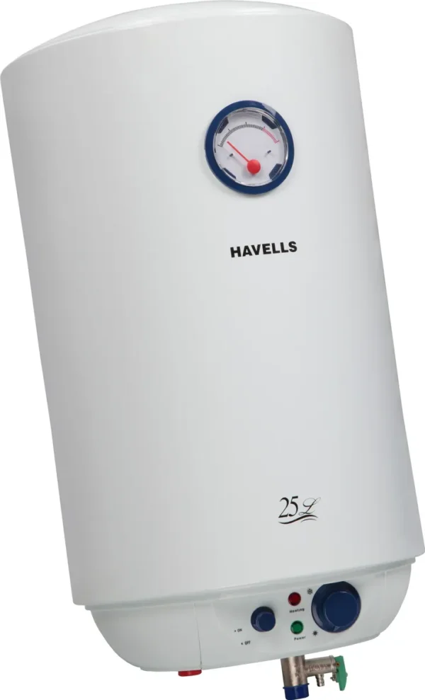 The Havells Monza 25 L Storage Water Geyser is a Storage water geyser. Capacity: 25 L. Energy rating: 5 star. Brand: Havells.