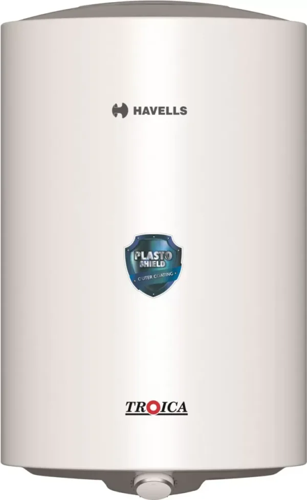 The Havells Troica 15L Storage Water Geyser is a Storage water geyser. Capacity: 15 L. Energy rating: 4 star. Brand: Havells.