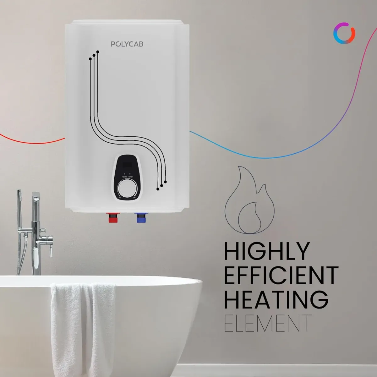 The Polycab Regalia 10L Storage Water Geyser is a Storage water geyser. Capacity: 10 L. Energy rating: 5 star. Brand: Polycab.
