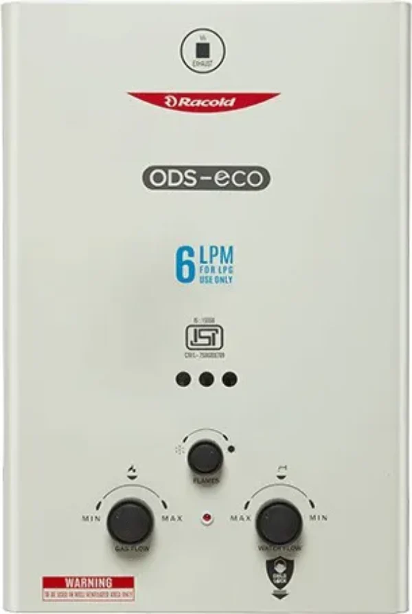 The Racold ODS-ECO 6L Water Geyser is a Gas. Capacity: 6 L. Brand: Racold.