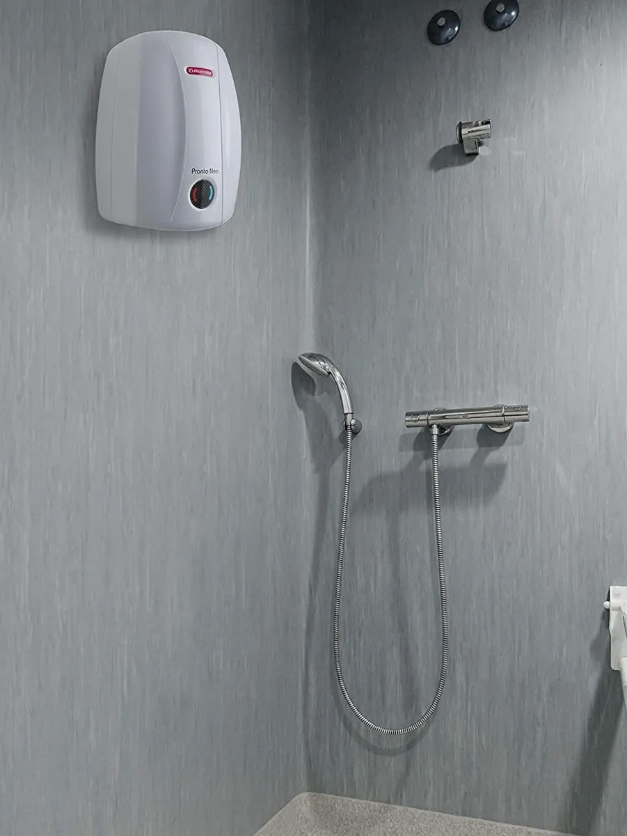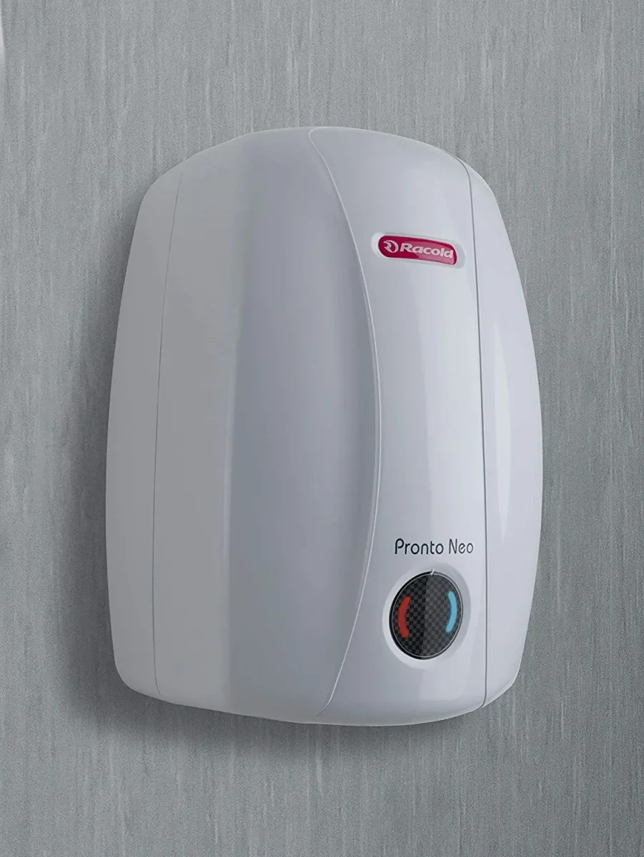 The Racold Pronto Neo 5L Instant Water Geyser is a Instant water geyser. Capacity: 5 L. Energy rating: 5 star. Brand: Racold.