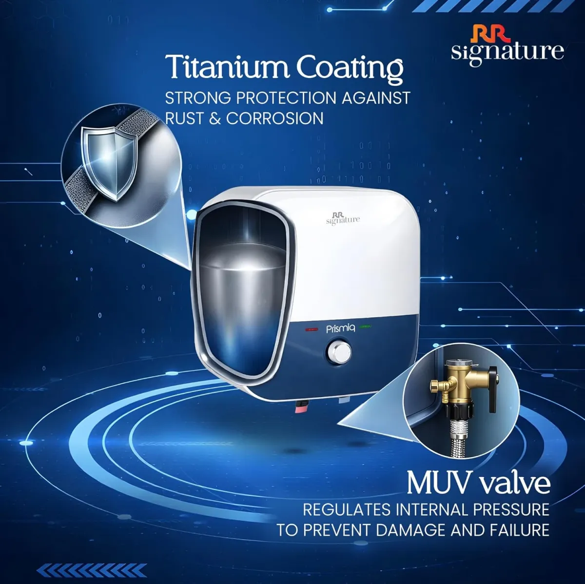 The RR Signature Prismiq 25L Storage Water Heater is a Storage water geyser. Capacity: 25 L. Brand: RR Signature.