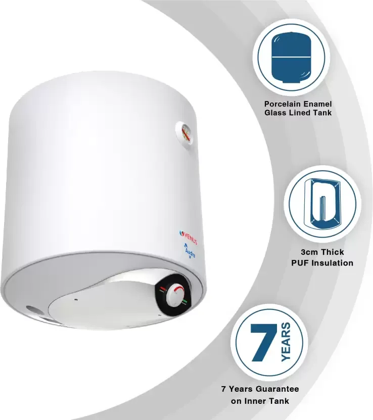 Audra 10AV (White) Water Heater, Porcelain Enamelled Glass Lined Tank, BEE Star Rating – 5 Stars:ISI ;