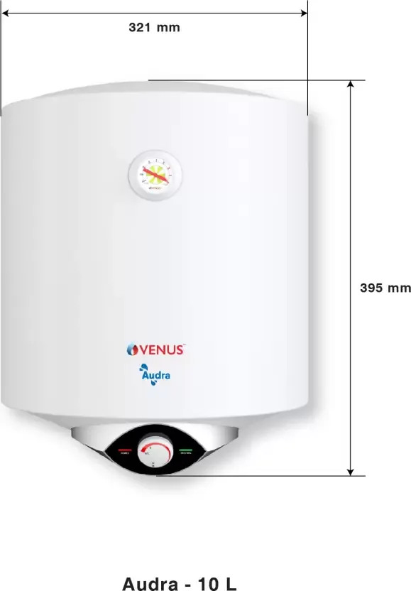 The Venus Audra 10AV 10 L Storage Water Geyser is a Storage water geyser. Capacity: 10 L. Energy rating: 5 star. Brand: Venus.