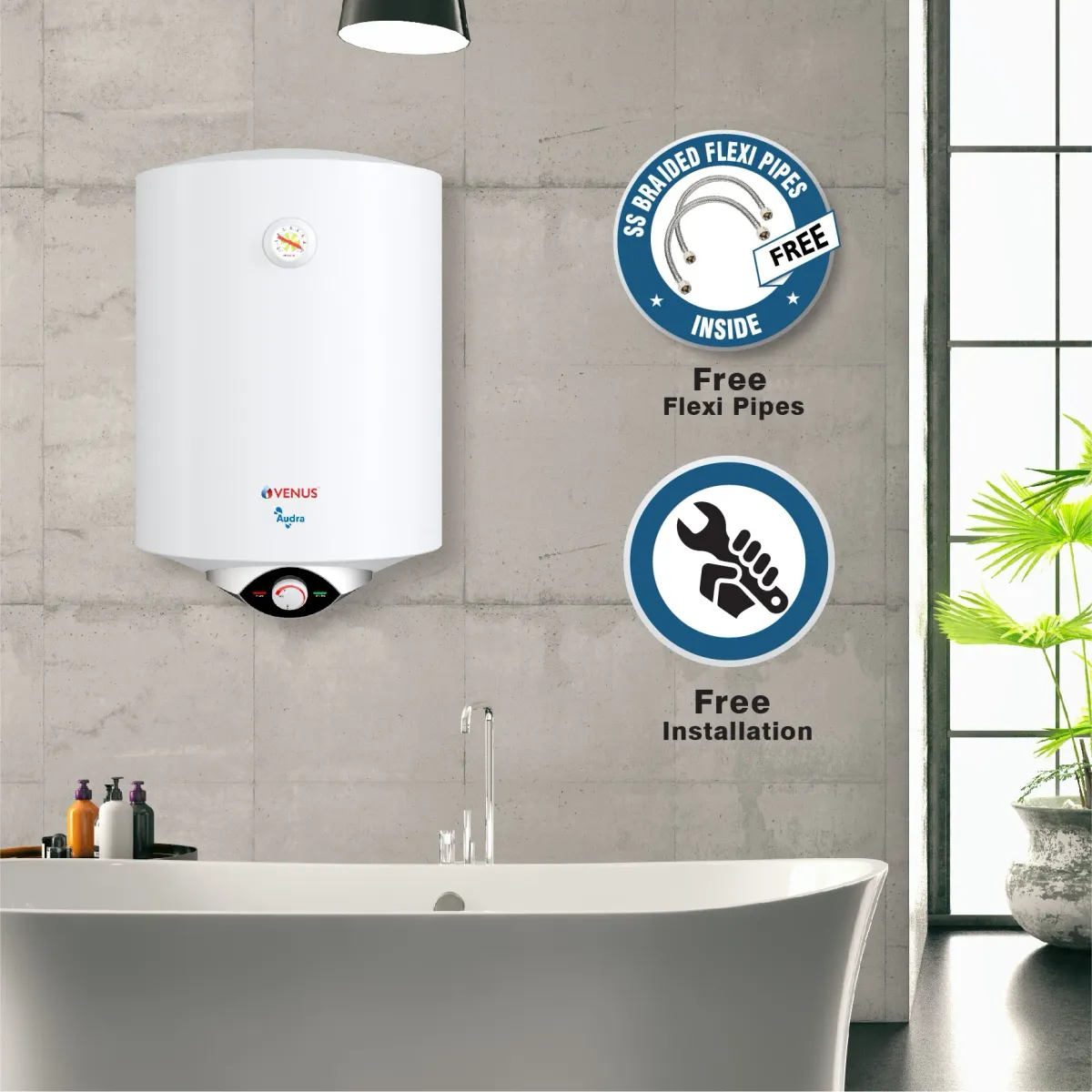 The Venus Audra 15L Storage Water Geyser is a Storage water geyser. Capacity: 15 L. Energy rating: 5 star. Brand: Venus.