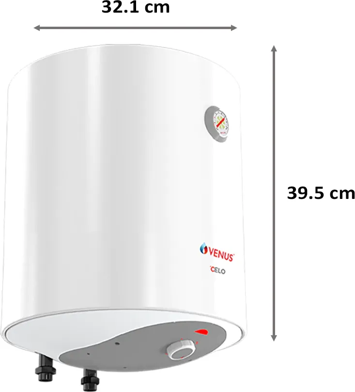 The Venus Celo 10 L Storage Water Geyser is a Storage water geyser. Capacity: 10 L. Energy rating: 5 star. Brand: Venus.