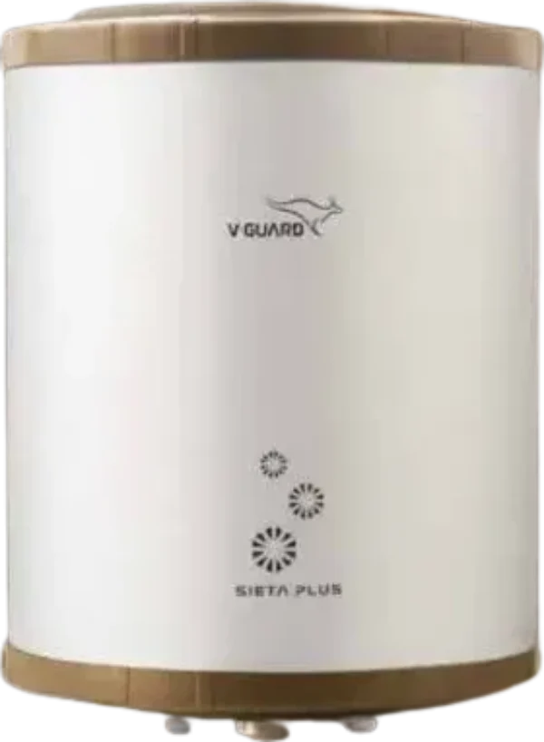 The V-Guard Sieta Plus 15L Storage Water Geyser is a Storage water geyser. Capacity: 15 L. Energy rating: 5 star. Brand: V-Guard.