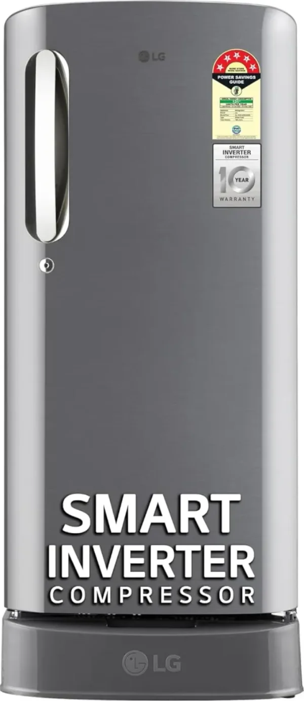 The LG GL-D201APZU 185 L 5 Star Single Door Refrigerator is a Single Door refrigerator. Capacity: 185 L. Energy rating: 5 star. Compressor: Smart Inverter Compressor.