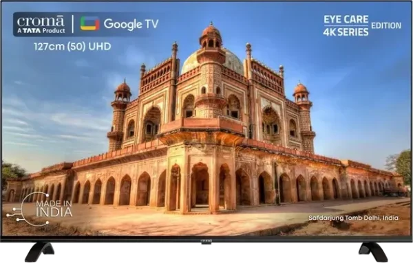 The Croma 50UGC024601 50 inch Ultra HD 4K Smart LED TV is a LED. Screen size: 50 in. Resolution: 4K, 3840 x 2160 pixels. Smart TV with streaming and connectivity. Warranty: 1 Year.