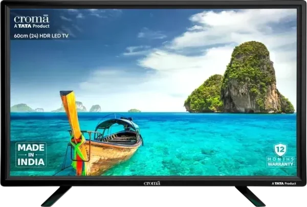 The Croma CREL024HBB024603 24 inch HD Ready LED TV is a LED. Screen size: 24 in. Resolution: HD Ready, 1366 x 768 pixels. Warranty: 1 Year.