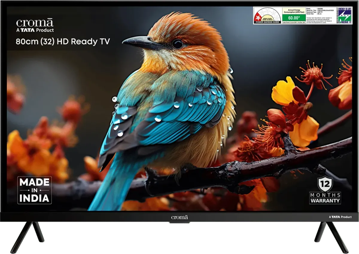 The Croma CREL032HBL024601 32 inch HD Ready LED TV is a LED. Screen size: 32 in. Resolution: HD Ready, 1366 x 768 pixels. Warranty: 1 Year.
