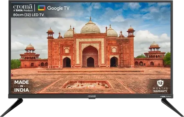 The Croma CREL032HGC331801 32 inch HD Ready Smart LED TV is a LED. Screen size: 32 in. Resolution: HD Ready, 1366 x 768 pixels. Smart TV with streaming and connectivity. Warranty: 1 Year.