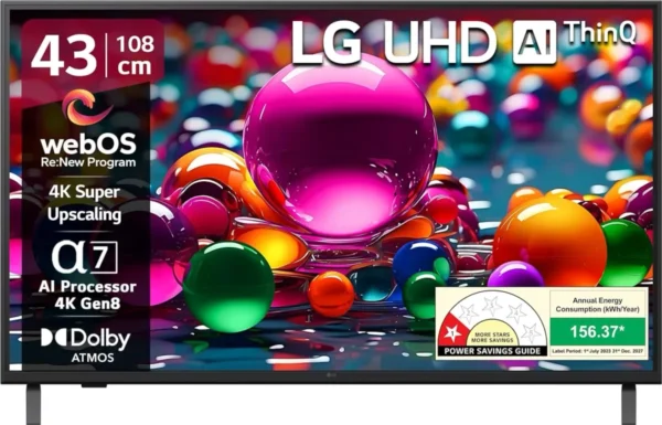 The LG UA8200 43 inch Ultra HD 4K Smart LED TV (43UA82006LA) is a LED. Screen size: 43 in. Resolution: 4K, 3840 x 2160 pixels. Smart TV with streaming and connectivity. Warranty: 1 Year.