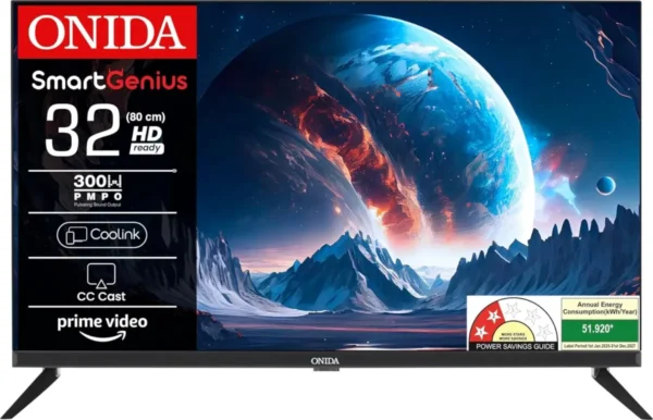 The Onida 32AHI 32 inch HD Ready Smart LED TV is a LED. Screen size: 32 in. Resolution: HD Ready, 1366 x 768 pixels. Smart TV with streaming and connectivity. Warranty: 1 Year.