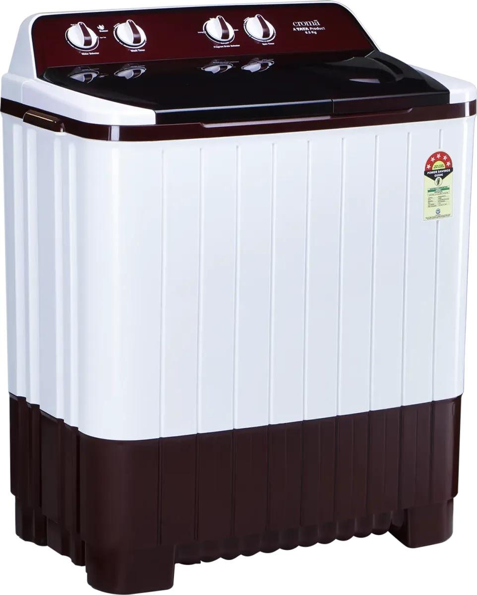 The Croma CRLW065SMF326101 6.5 Kg Semi Automatic Washing Machine is a Washing Machine with Dryer. Capacity: 6.5 kg. Energy rating: 5 star. Brand: Croma.