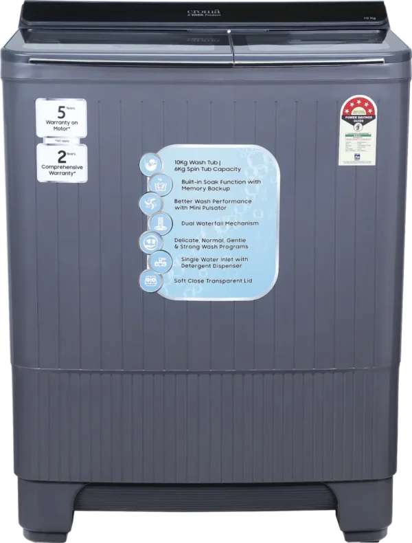 Specification: Croma CRLW100SMF231001 10 kg Semi Automatic Washing Machine